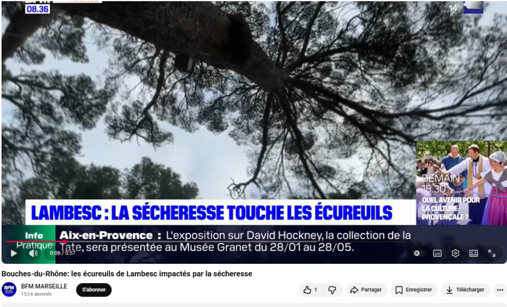 📺 BFM Marseille Provence a diffusé Le 19 février, un reportage sur la sauvegarde des écureuils roux en Provence, notamment autour d’un projet de parc de préservation à Lambesc. Dans ce segment, notre action pour protéger les populations locales d’écureuils a été mise en lumière, avec des images du terrain et des interventions d’acteurs locaux engagés.