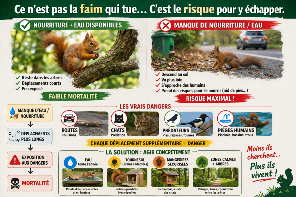 Quand la nourriture ou l’eau manquent, l’écureuil :