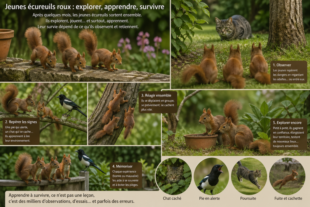 La première année de la vie des écureuils se déroule ainsi :