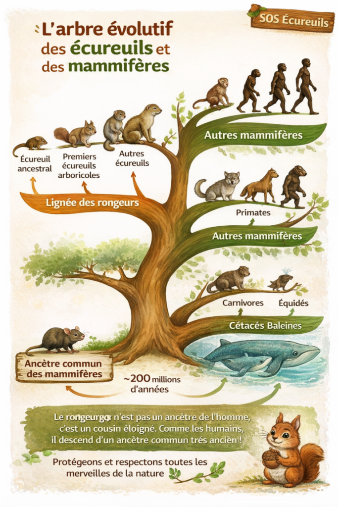 Tous les mammifères — écureuils, humains, baleines, loups — descendent d’un ancêtre commun ayant vécu il y a environ 200 millions d’années.
