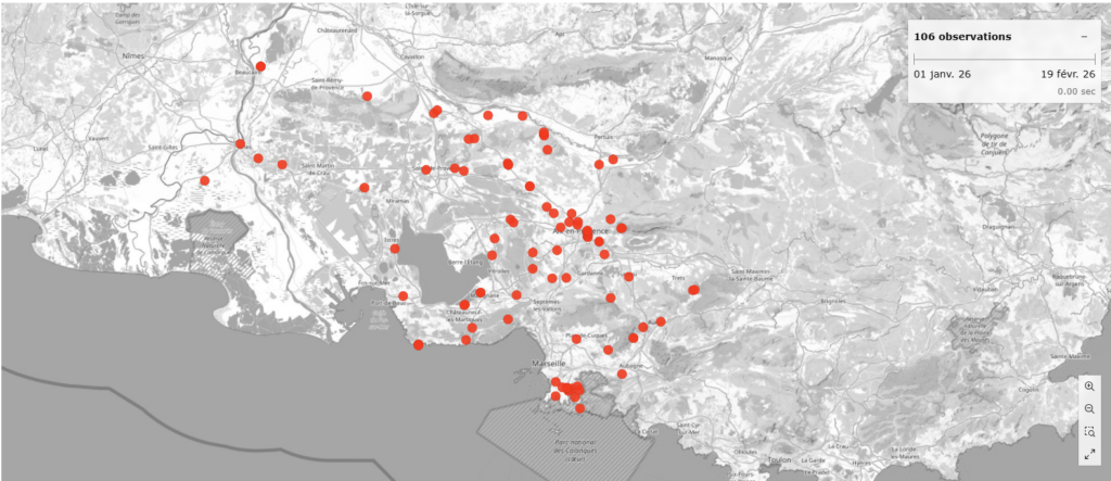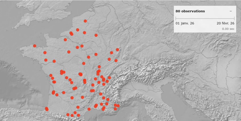 D’autres en vert foncĂ© ont des observations mais cela ne veut rien dire car en 2026 on a beaucoup plus d’observateurs.