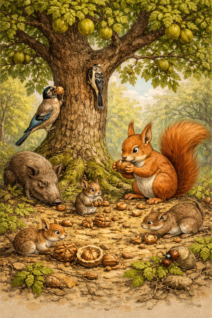Dans la nature, il faut souvent se lever tôt pour ramasser des noisettes : écureuils, geais, rongeurs et insectes les cherchent activement. Ces fruits riches en énergie sont une ressource essentielle pour toute la faune.
