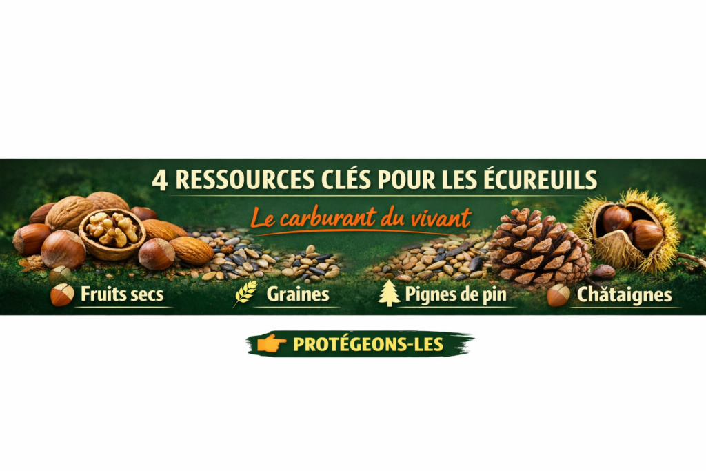 👉 Sans pignes + sans noisettes = plus d’écureuils