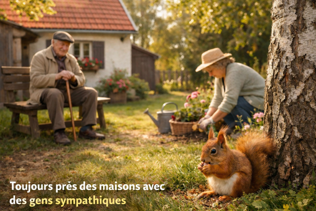 L’écureuil roux rend les gens heureux car il est trop mignon et fait craquer les séniors et les enfants !