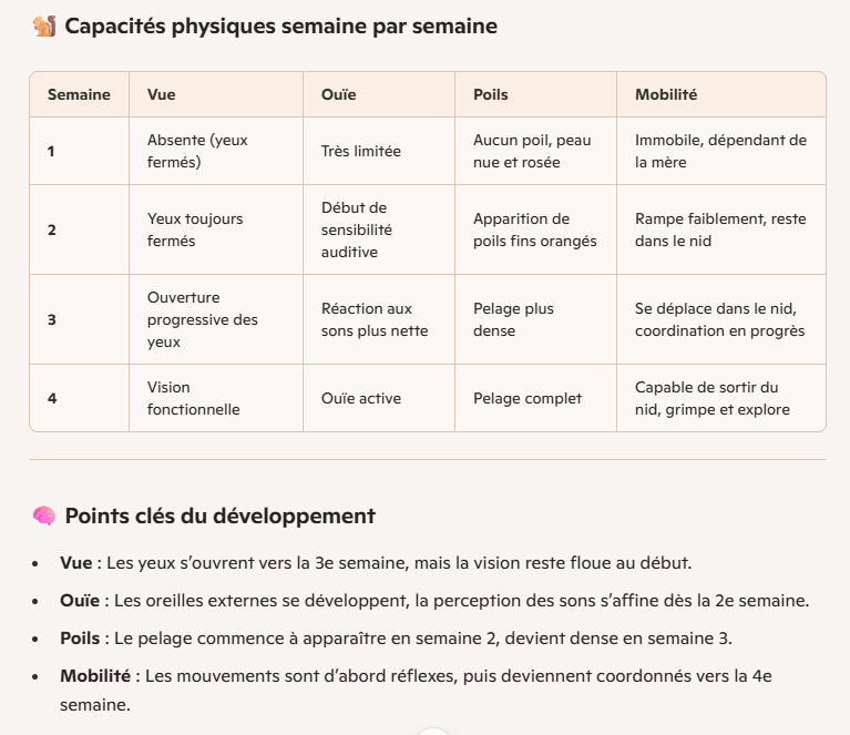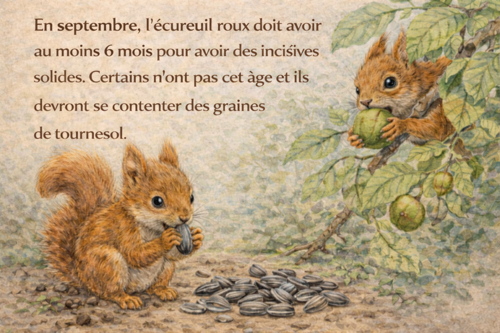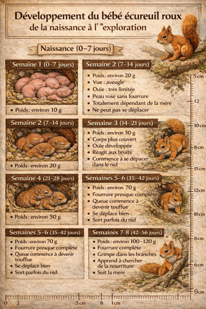⚠️ Chaque mois décrit une évolution des écureuils avec une date de conception à janvier