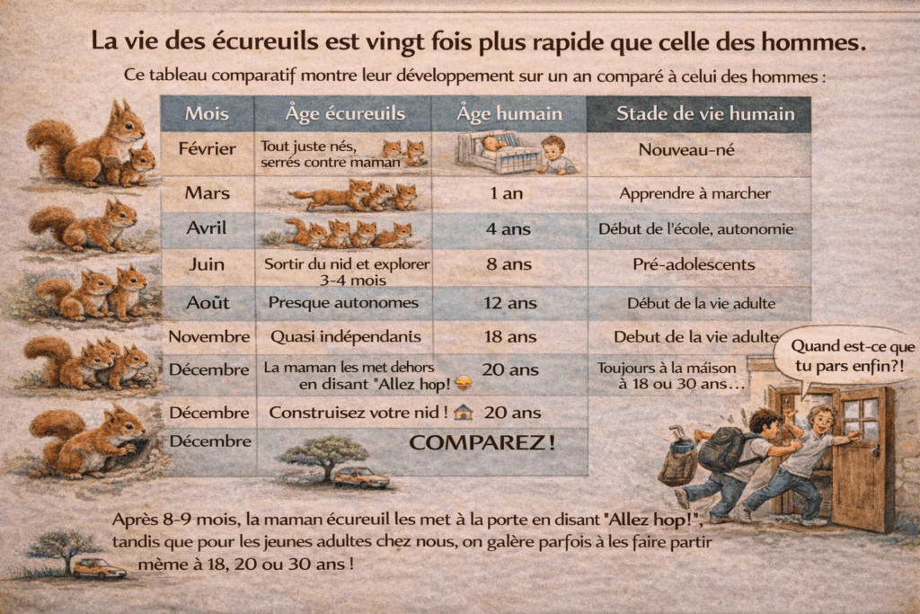 Chez l’écureuil roux, la vie ne suit pas toujours un calendrier fixe comme chez les humains.